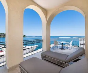 Die luxuriösen Junior Suite Apartments befinden sich im 1., 2. und 4. Stock und bieten einen spektakulären Meerblick. Sie haben eine Fläche von 20 bis 26 m2 und ein Kingsize-Bett (180 × 200 cm). Ein Zustellbett für ein Kind bis 10 Jahre ist auf Anfrage erhältlich. Die Wohnung ist mit einem Smart-TV, einem Schreibtisch und einem Sitzbereich ausgestattet. Das Badezimmer kann eine Dusche oder eine Badewanne haben, und es gibt auch einen Haartrockner. Telefon, WLAN, Safe und Klimaanlage mit Heiz- und Kühlfunktionen sind Standardvorteile sowie die Nutzung einer Minibar gegen Aufpreis.